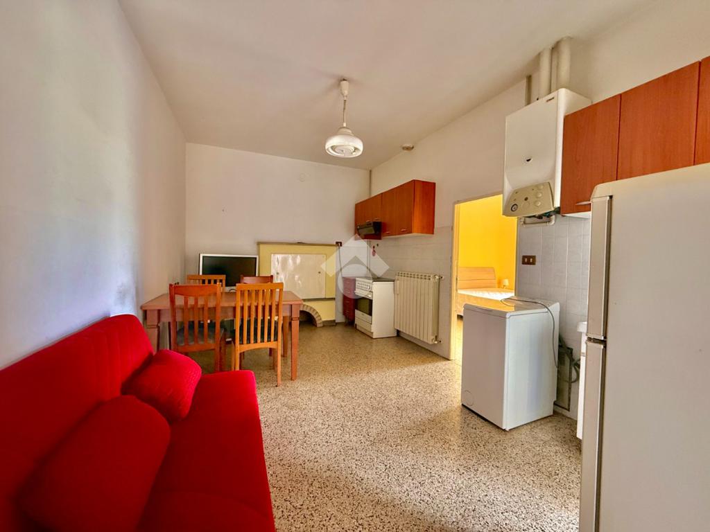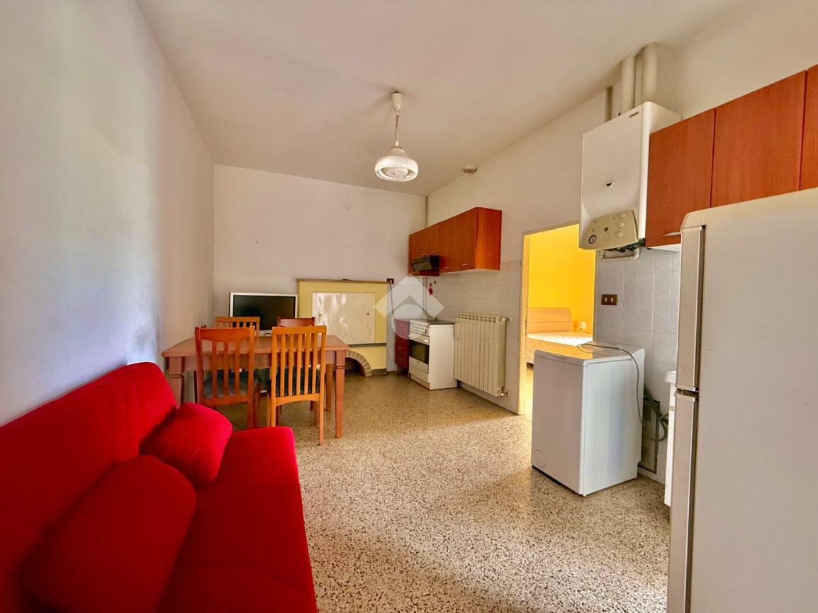L’ingresso privato apre su un open space funzionale, adatto come zona giorno con angolo cottura.