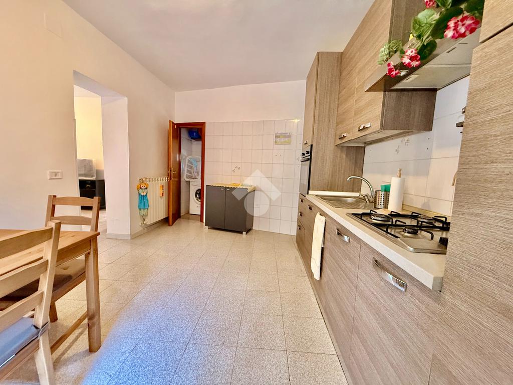 All’interno, l’ingresso si apre su un ampio e luminoso soggiorno, perfetto per accogliere familiari e amici; la cucina abitabile, separata ma comunicante con la zona giorno, offre spazio sufficiente per pranzi e cene in totale comodità.